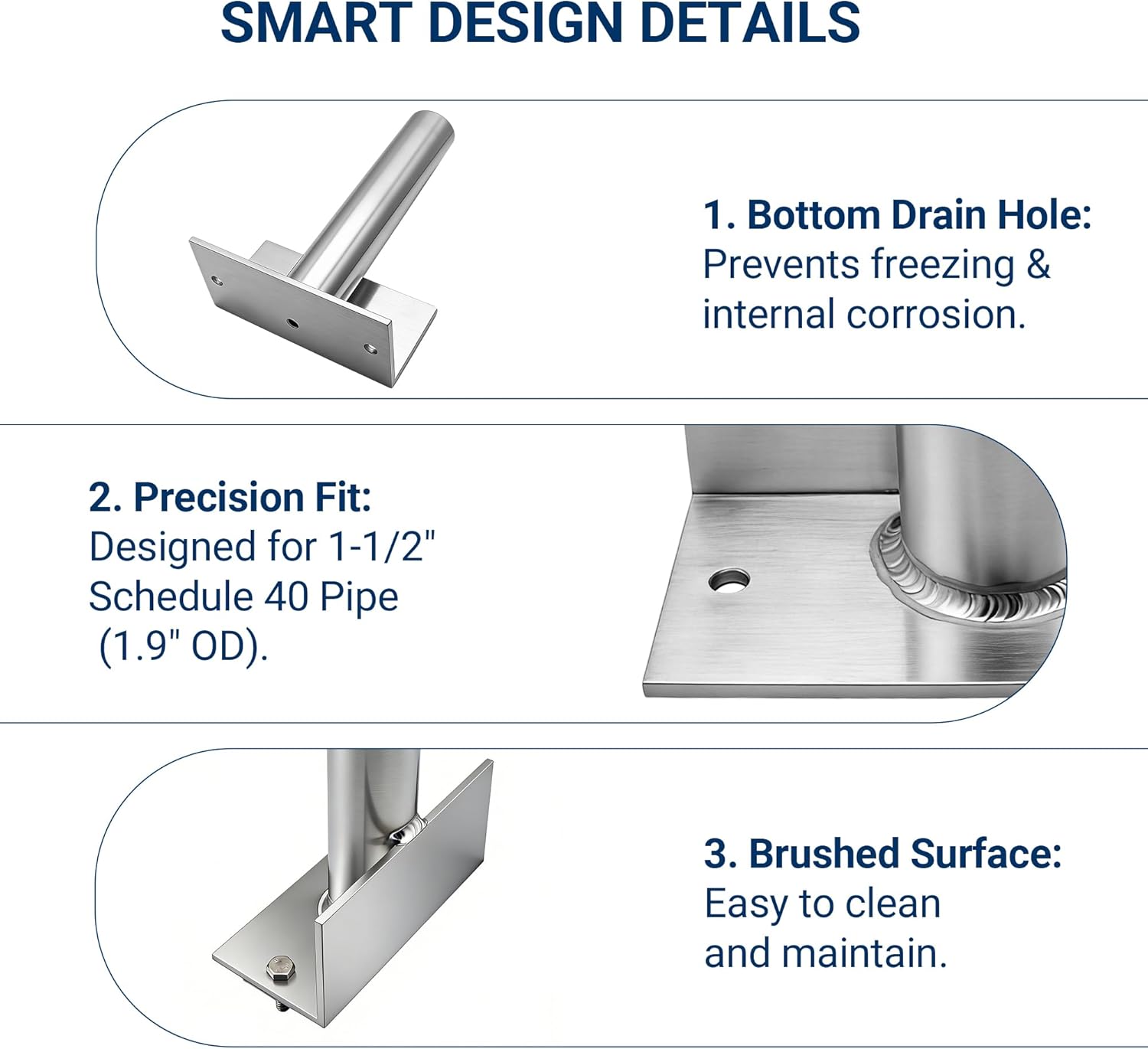 Effortless Docking & Maximum Protection Our heavy-duty Guide Post Bracket makes boat loading safe and easy. Crafted from marine-grade 6061 aluminum and stainless steel hardware, it's built to last in both fresh and salt water environments. Each bracket is CNC cut for precision and reinforced with aluminum welds for superior strength and rigidity. This process ensures a perfect fit on your I-beams and long-lasting performance under heavy load. The built-in drain hole prevents water accumulation, reduces corrosion, and extends the bracket’s service life—especially in harsh marine conditions. It’s designed for a standard 1-1/2" Schedule 40 pipe (1.9" OD) and fits common 5"x8" and 6"x10" I-beams. Everything you need for installation is included, so setup is quick and hassle-free. Specs: Material: 6061 Aluminum + Stainless Steel Hardware Construction: CNC Cut + Aluminum Weld Reinforced Size: 12" Height Fits: 1.5" Schedule 40 Pipe (1.9" OD / 51.5mm Inner Dia.) Includes: Bracket, Mounting Tabs, All Hardware