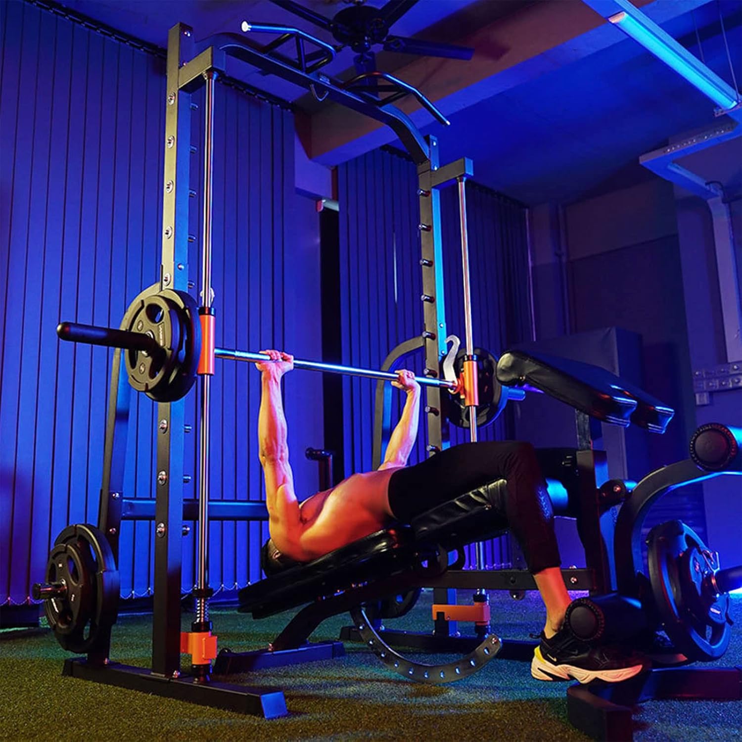 Ten-segment height adjustment limit design, suitable for users of different heights to exercise, using 25mm diameter solid electroplating limit sheet metal, safe and secure! High-quality steel forged round solid slides, the surface is plated with hard chrome (wear-resistant chrome), and the coating has high hardness and wear resistance. parameter: Product name: machine squat rack Assembly size: 2030x1050x2120mm / Package size①: 2050x300x130mm Gross weight: 84.5KG Package size②:1410*360*240mm Net weight: 79.5KG We always pay attention to what you need in your life, and strive to make your daily life safer, more convenient, and more enjoyable, contact us by mail and send you the ideas of the products you need, we have a strong design and manufacturing team as your support, we We listen to every customer's suggestion to improve our products into products you can rely on.