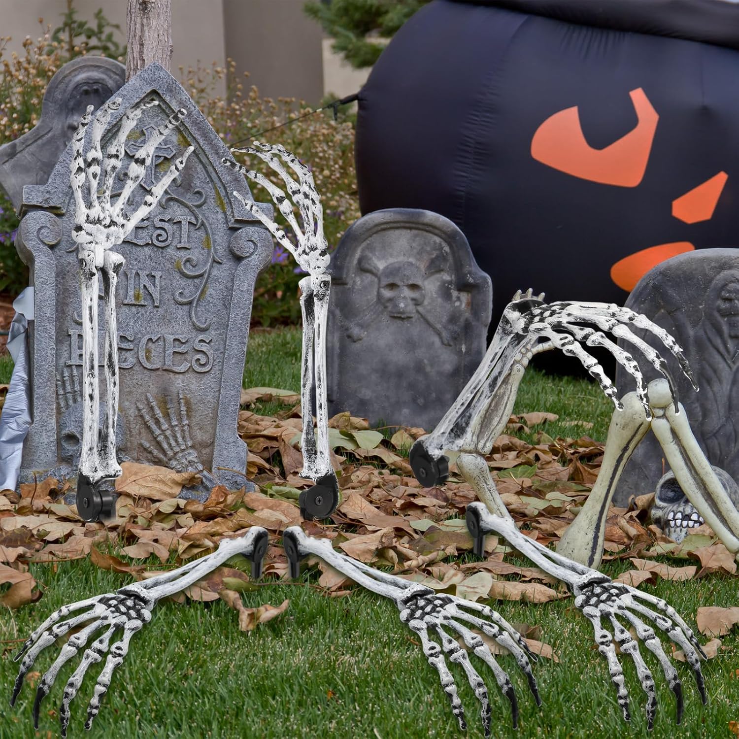 Features: Create Halloween atmosphere: Just insert the Halloween skeleton yard stakes in your lawn and they will look as if this spooky soul is emerging from his grave. They are ideal for Halloween, graveyard decorations, indoor and outdoor zombie decorations, creating a strong horror Halloween atmosphere. Life like design: Each skeleton hands lawn decor measures 18.1 inches tall, meticulously designed to mimic the look of real human bones, making them stand out and create a creepy effect in your yard or garden, enhancing the authenticity of your Halloween display. Specifications: Material: plastic Color: white, black Size: 18.1 x 3.9 inches Package includes: 10 x Halloween skeleton lawn decorations Notes: Manual measurement, please allow slight errors on size. The color may exist a slight difference due to different screen displays
