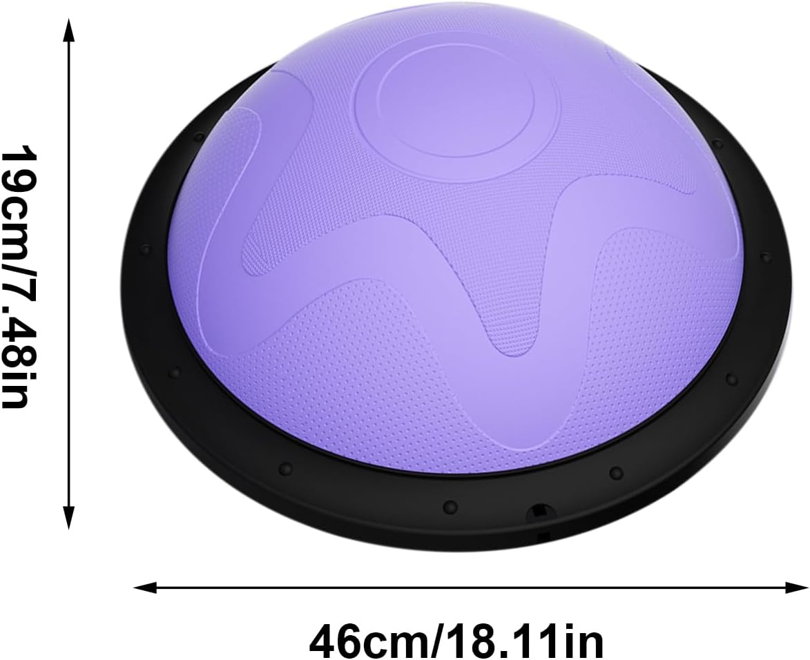 The balancing board ball is designed to enhance core workout and stability training for men and women alike. This versatile equipment supports exercising routines that improve balance and strengthen muscles, making it ideal for use at home or in a yoga studio. Families can enjoy shared fitness activities, as this product suits both husband and wife, fostering a healthier lifestyle together. Its half-ball design provides a stable yet challenging base for various workouts, promoting better alignment and coordination. Whether used for personal fitness goals or family.SpecificationProduct material: PVCProduct size: 46x19cm / 18.11x7.48 inchesListHalf balance training ball x1Elastic cord x1Air plug x1Air pump x1Note:1. Due to lighting effects and display angles, there may be color differences in the product.2. Due to manual measurement, there may be errors in product size, please understand.