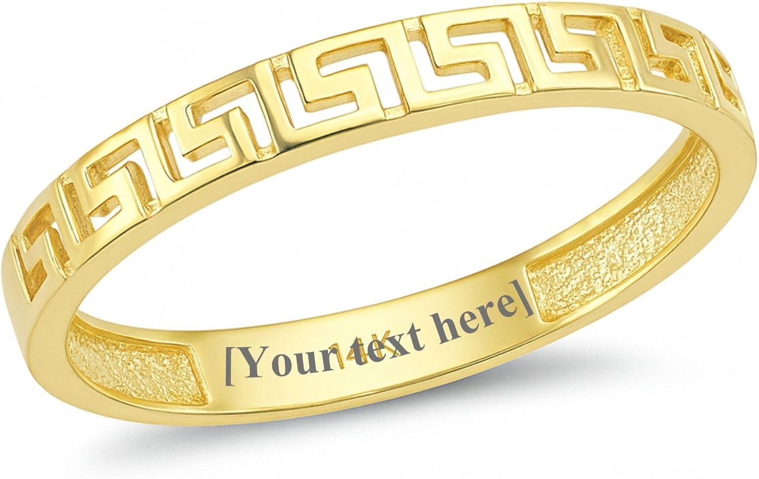 GA GOLD OF AMERICA Customized 10K-14K Real Solid Gold Greek Key Ring, Custom Engraved Byzantine Wedding Band Engagement Ring