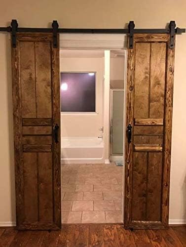 Luxurious Rustic Split Barn Doors Handmade in USA. Standard Door Dims are 90in X 1.5in X 48in Exotic Pine Borders (Burnt) Interior Panel (Non Burnt) Decorative Trims add class and appeal. Stained with walnut color. Hardware Included