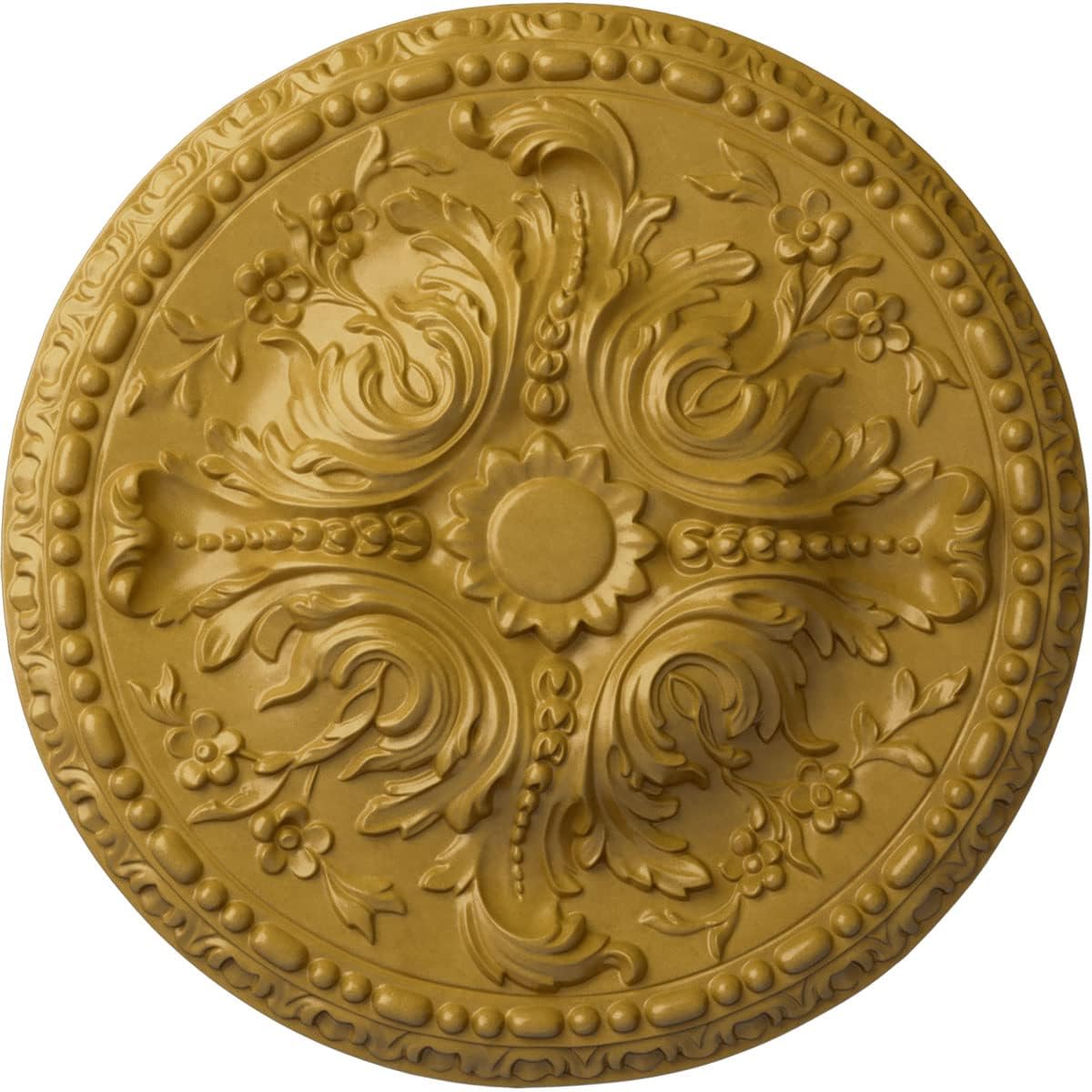 Our ceiling medallion collections are modeled after original historical patterns and designs. Our artisans then hand carve an original piece. Being hand carved each piece is richly detailed with deep relief, sharp lines, and a truly unique touch. That master piece is then used to create a mould master. Once the mould master is created we use our high density Urethane foam to form each medallion. The finished look is a beautifully detailed, light weight, solid construction, focal piece. The resemblance to original plaster medallions is achieved only by using our high density Urethane and not vacuum formed, "plastic" type medallions. - medallions can be cut using standard woodworking tools to add a hole for electrical or a ceiling Fan canopy. - medallions are light weight for easy installation. - they are fully primed and ready for your paint. If you have any questions feel free to ask. These are in stock and available for immediate shipment.