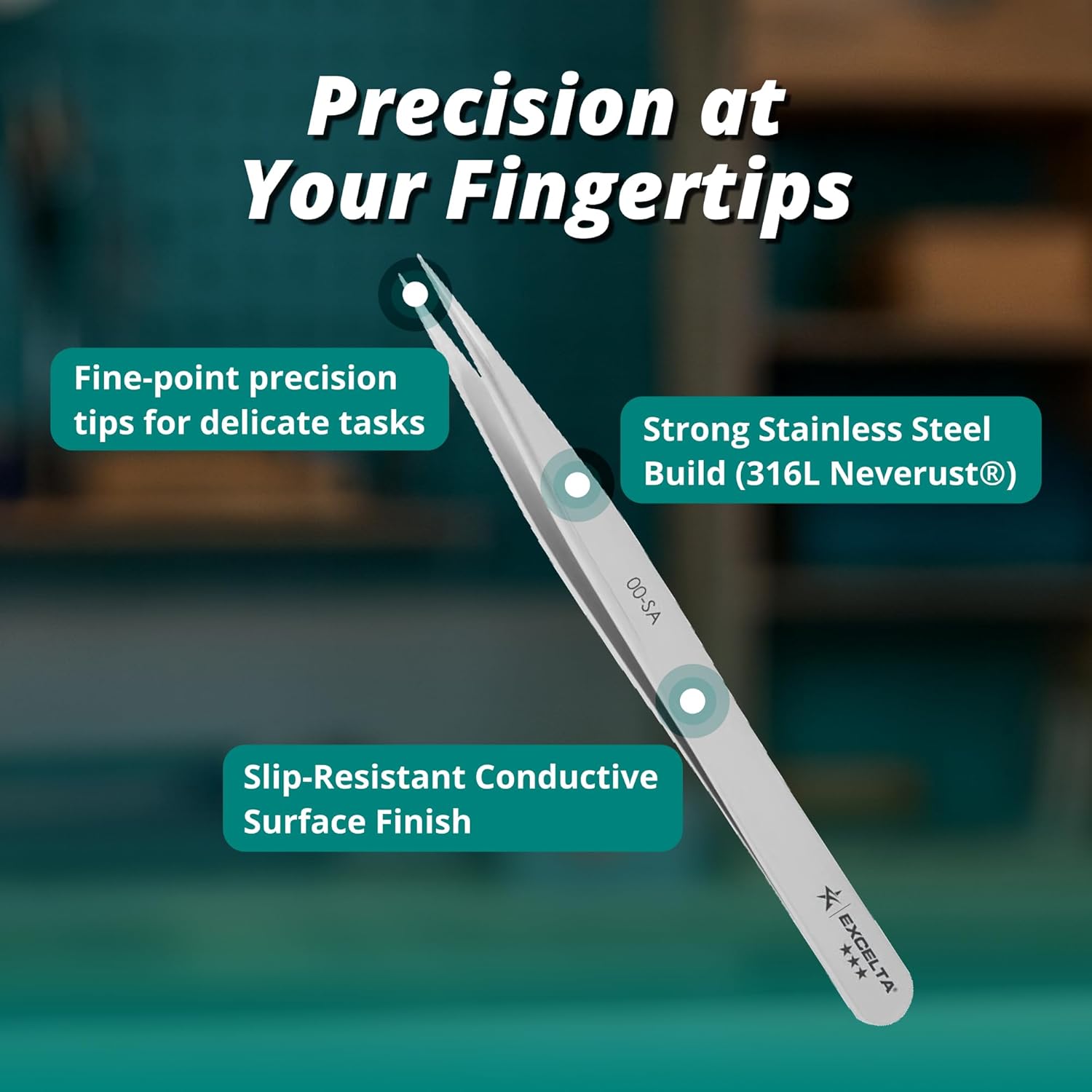 Delve into the world of precision with our professional tweezers, a staple in the toolkit of anyone who prioritizes accuracy and dependability in their routine work. These tweezers feature a straight, strong medium point, making them an ideal selection for everyday tasks that don't require magnification. These tweezers, crafted from high-grade anti-magnetic stainless steel, are durable and safe for handling sensitive components, thanks to their ability to eliminate the risk of magnetic interference, making them a reliable tool in environments where precision is paramount. At Excelta, our dedication to precision extends far beyond our tweezers. We proudly offer an extensive array of tools, including cutters, pliers, wire strippers, and scissors, each meticulously designed for tasks that demand fine handling and precise execution. We take pride in crafting durable, high-quality tools that professionals can use for precision work.