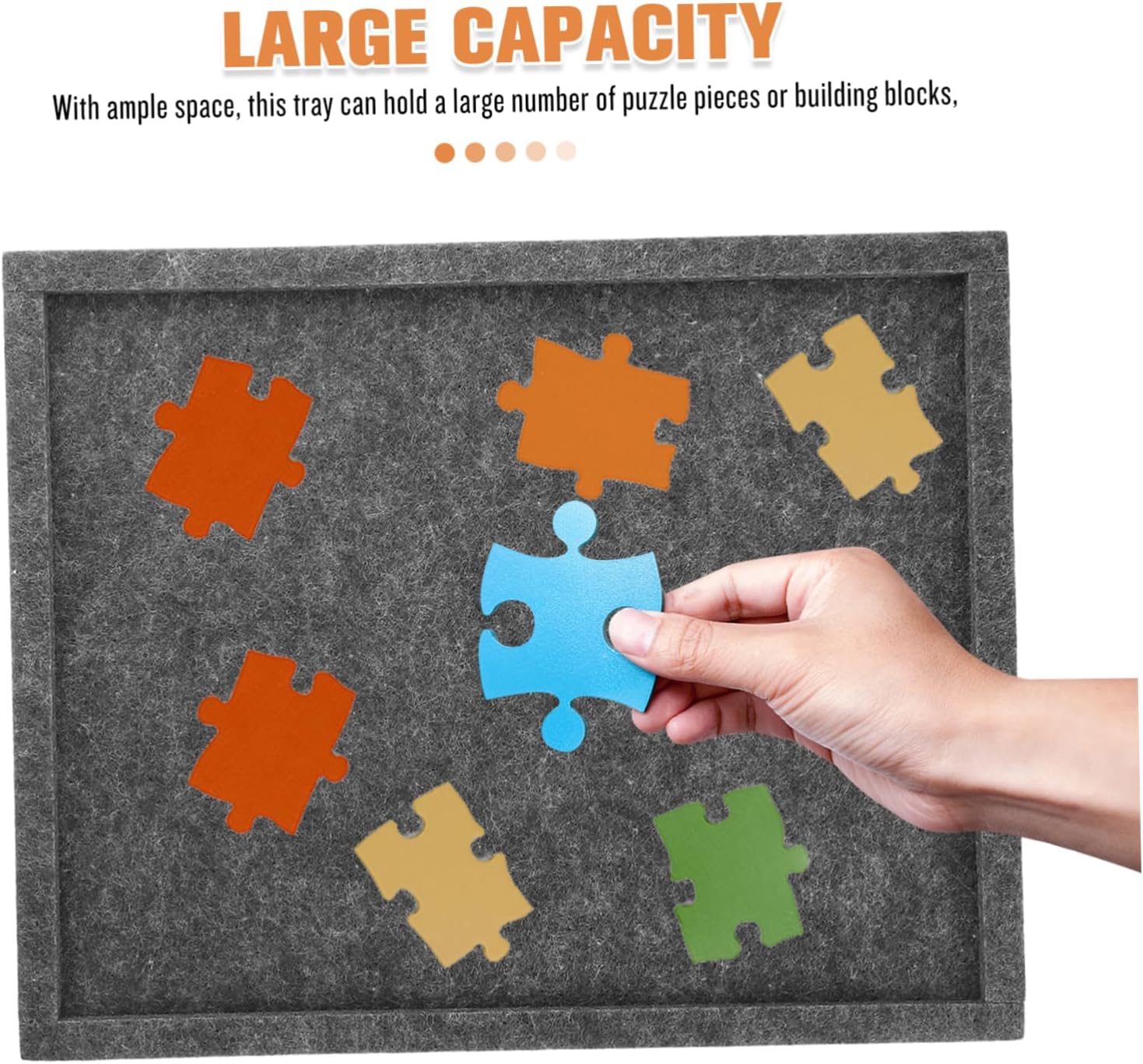 Package List 6 x Puzzle tray, 1 x lid cover, 2 x elastic band Characteristics -Felt sections for easy sorting: the felt sections allow you to easily sort and store different of puzzle pieces or building blocks, making it simple to keep everything organized puzzle accessories for adults -Easy to carry: its compact size makes it easy to carry and store, making it suitable for use at home, school, or during trays stackable -Generous capacity: with a large capacity, this tray can accommodate a significant number of puzzle pieces or building blocks, ensuring ample storage space sorting tray -Color:Dark Grey puzzle holder storage -Material:Felt stackable puzzle trays - : made from , materials, this tray is designed to last and is easy to clean, ensuring longterm use puzzle organizer -puzzles storage: this tray is ideal for organizing puzzles, building blocks, and other , providing a comprehensive storage puzzle organizer trays -Size:30.00X24.00X1.00cm/11.79X9.43X0.39in puzzle traysGoods Descriptionpuzzle mat organizer With its versatile design, this puzzle piece sorter can also be used for organizing other small items such as beads or craft supplies.jigsaw puzzle trays Whether you're working on a large puzzle or a smaller project, this tray will keep everything in order.puzzle sorting trays stackable The felt material prevents pieces from , ensuring that your workspace remains tidy
