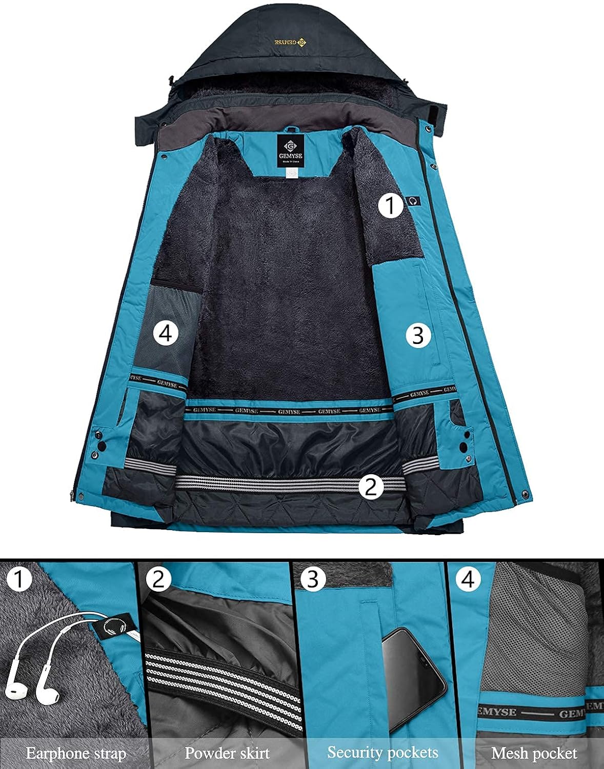 GEMYSE Men's Mountain Ski Jacket Black L+ GEMYSE Women's Mountain Ski Jacket Acid Blue L