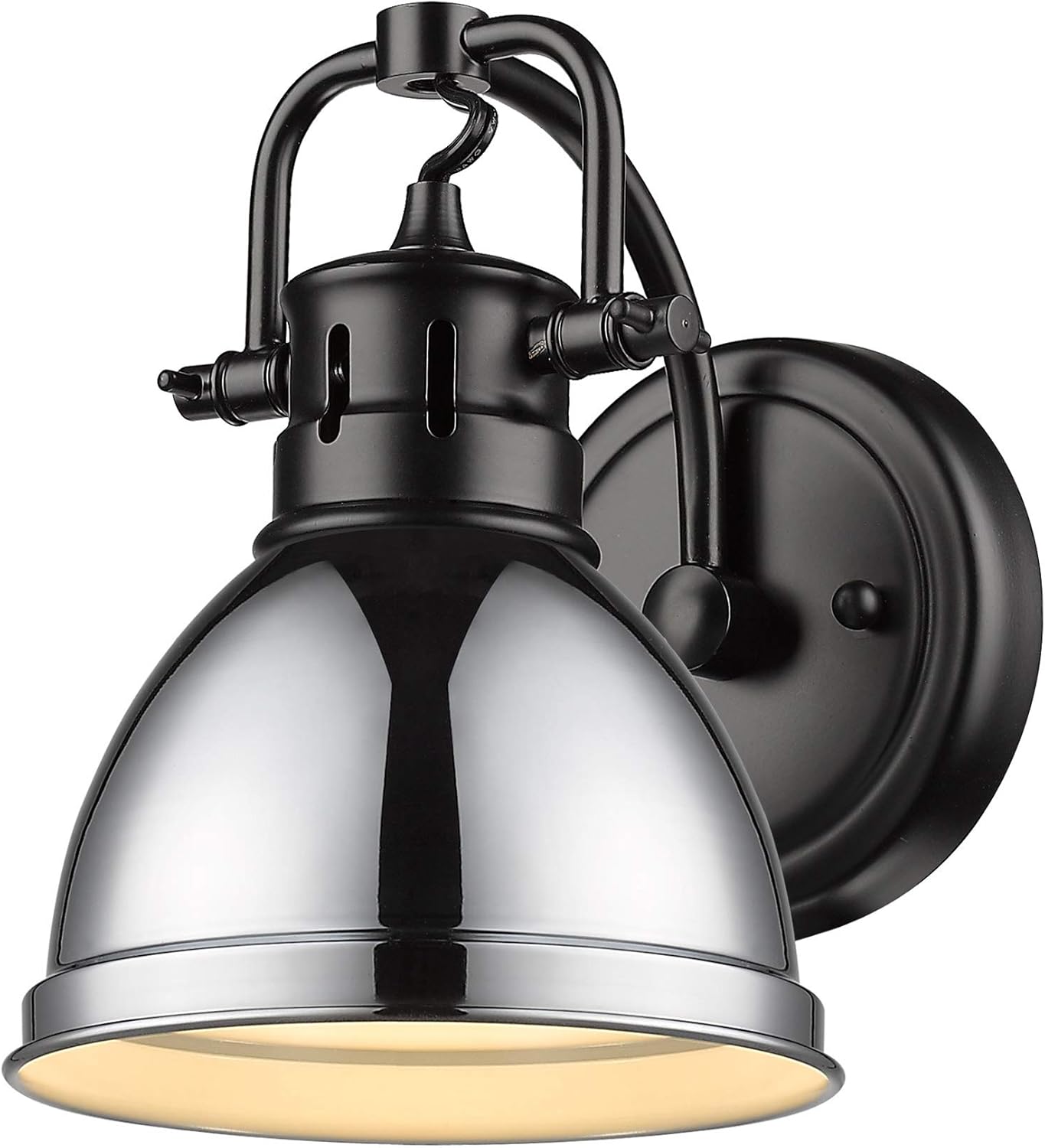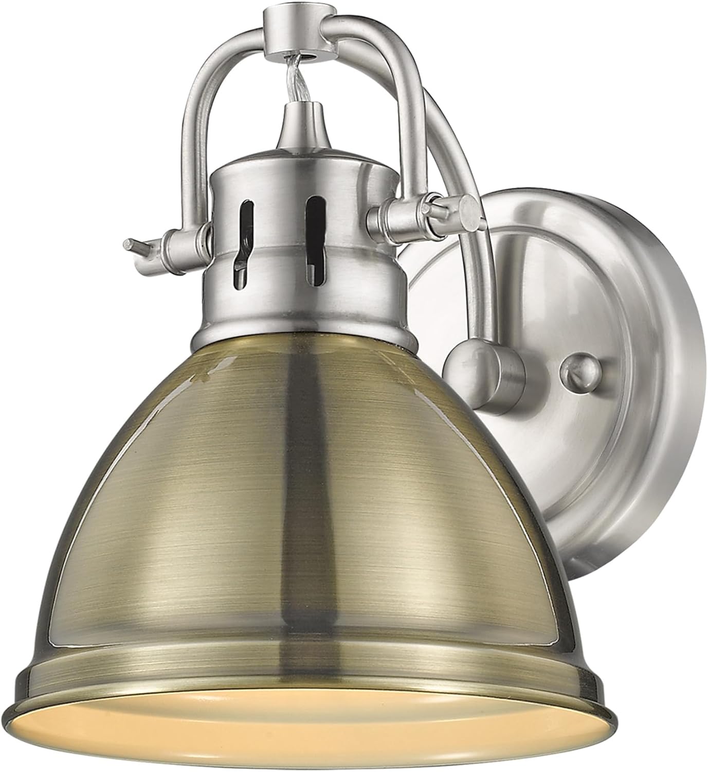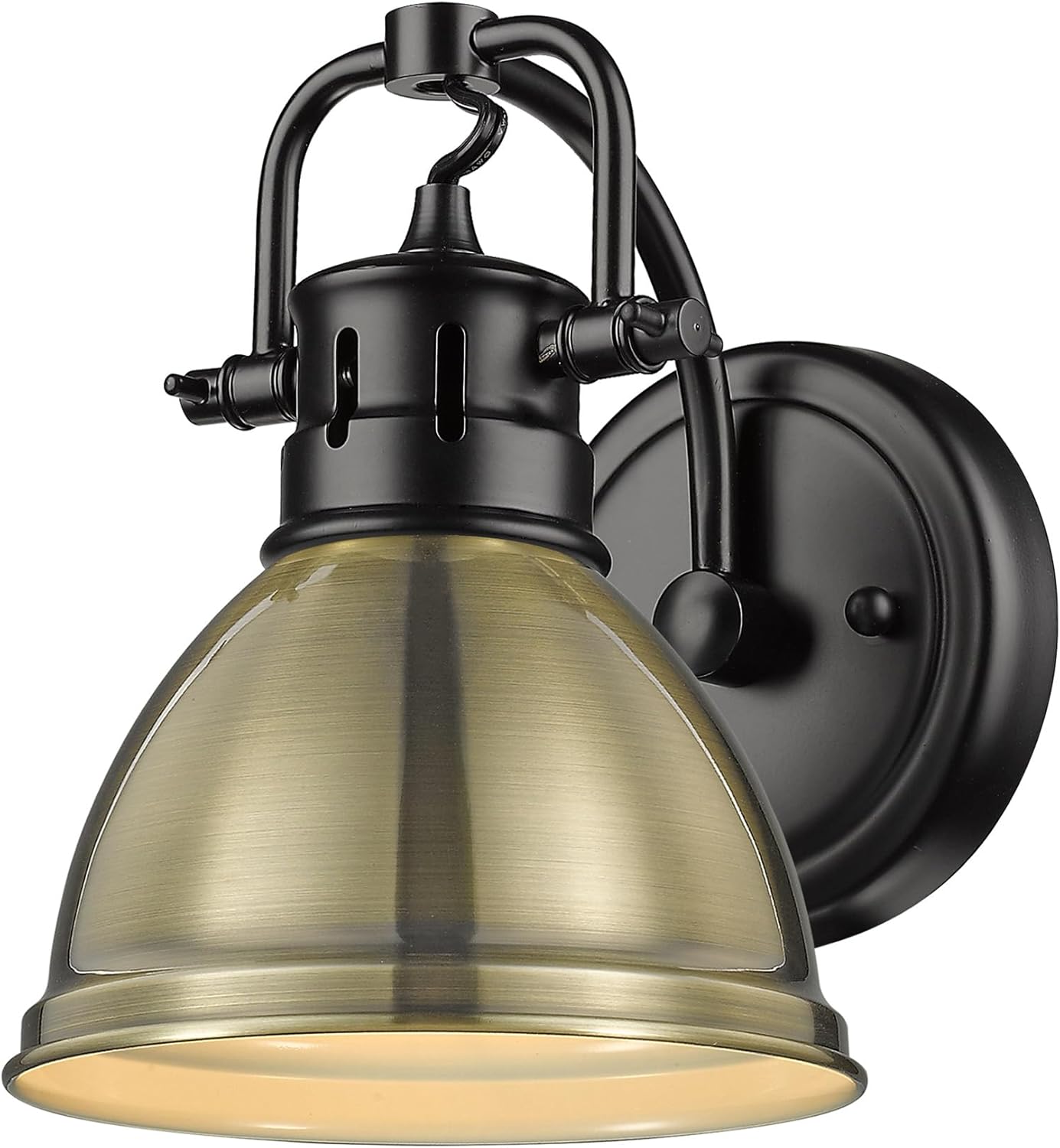 Transform the look of your room with this classic, vintage-inspired fixture by Golden Lighting. Golden Lighting's Duncan collection is contemporary style with an industrial feel. The collection features a variety of simple, traditional silhouettes that are a nod to a bygone era. A variety of plated and painted metal shade finishes are offered in combination with durable Aged Brass, Black, Chrome or Pewter fixture bodies. This 1-light bath vanity is perfect for modern or contemporary style home decors.