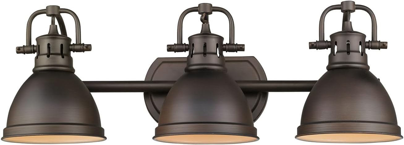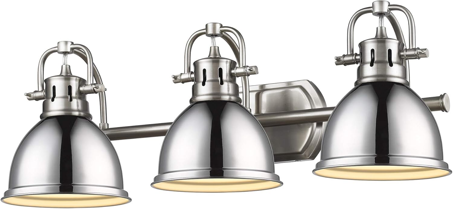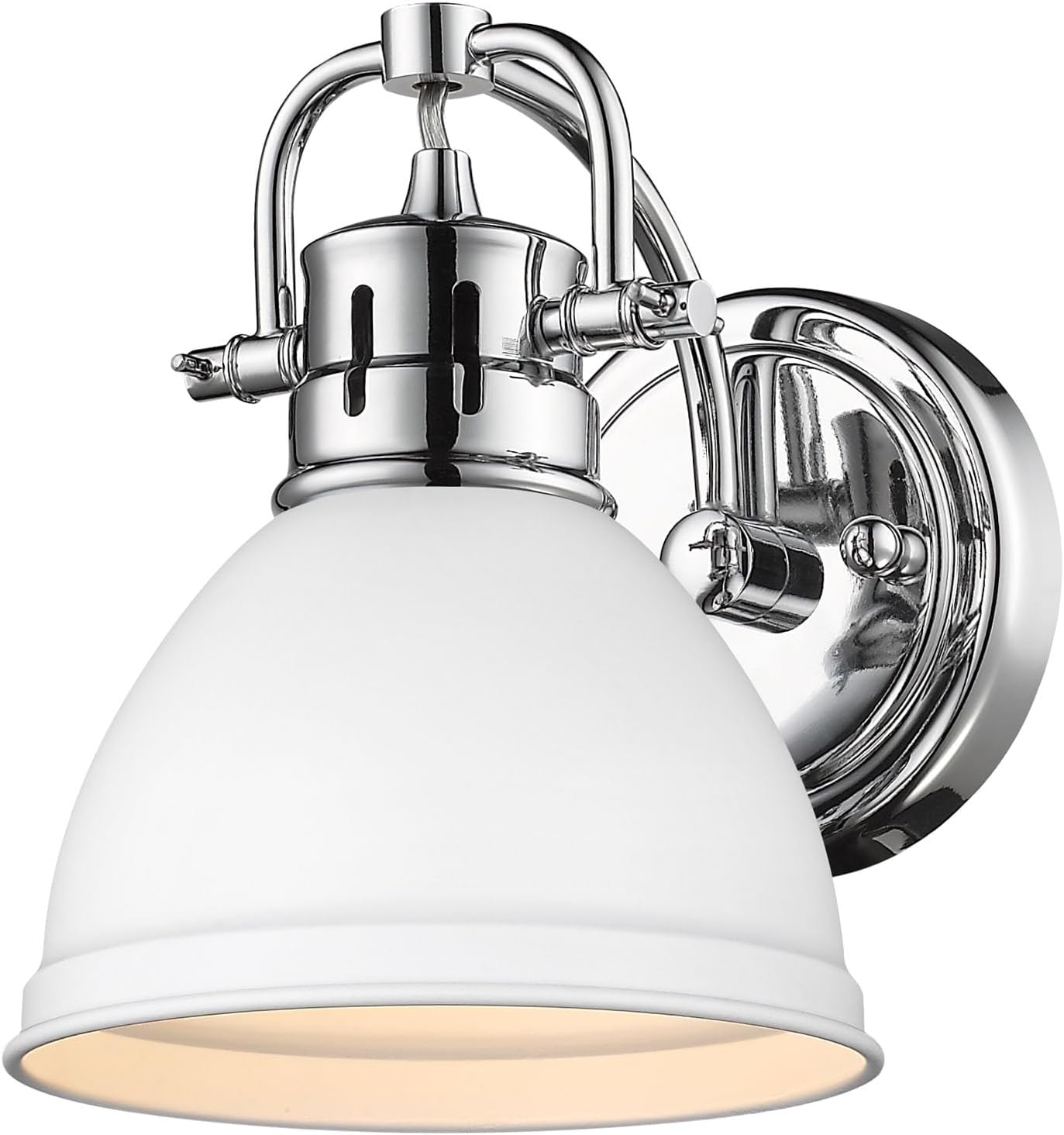 Transform the look of your room with this classic, vintage-inspired fixture by Golden Lighting. Golden Lighting's Duncan collection is contemporary style with an industrial feel. The collection features a variety of simple, traditional silhouettes that are a nod to a bygone era. A variety of plated and painted metal shade finishes are offered in combination with durable Aged Brass, Black, Chrome or Pewter fixture bodies. This 1-light bath vanity is perfect for modern or contemporary style home decors.