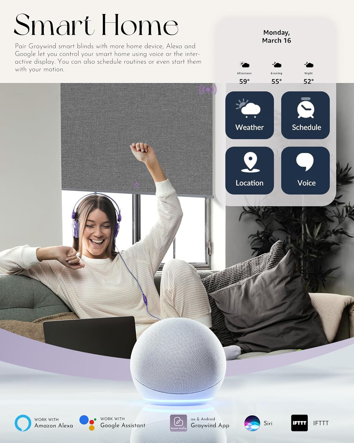 | Compatible Devices | Alexa, Google Assistant, Graywind APP, Smartphone, Tablet |