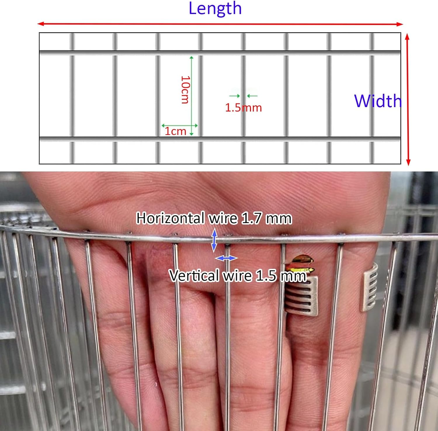 HOLGVE Welded Wire Mesh Wire mesh roll shaped for specific projects in a home or in a garden such as chicken run, rabbit cage, oven mitts, gas storage cage, wall shelf, snake fence, composter, gabion bench seat, tree guards,fruit trees, vegetable garden,to keep out small critters such as volesSpecifications:Product Name: Welded Wire Mesh/Hardware Cloth/Wire Fencing/Mesh Roll/Chicken Coop/Welded Wire Mesh/Chicken Wire Mesh/Fence Mesh Roll/304 Stainless Steel Welded Wire Mesh Wire Metal MeshAperture: Length 10cm/Width 1cm,Wire diameter: 1.5mmFeatures: firm solder joints, strong tensile force, and bright surface.Package Included:1 x Stainless Steel Wire MeshTo note:To facilitate transportation, our wire mesh will be rolled into a tube shape. Be careful of the edge, avoid getting cut while open and use. Thanks for understanding!