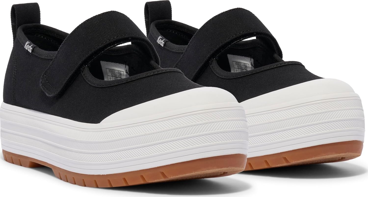 A classic Mary Jane gets a perfectly pairable mod makeover. Introducing the Keds Mary Jane. With all the charm of the original silhouette, this canvas sneaker with a hook-and-loop closure will be the one you're reaching for on repeat. Lightweight 1-inch platform bottoms with a lug outsole offer an edgy update on this timeless style, while a supersoft footbed and breathable lining keep you comfy throughout the day. Pair these with denim, maxi dresses, and the season's minis with tights for an elevated but understated look.