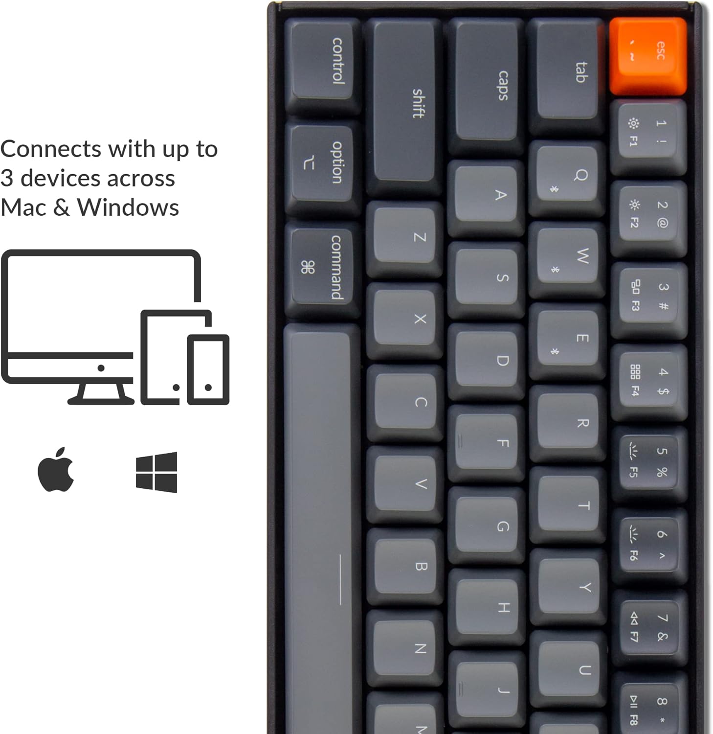 • With a unique Mac layout while compatible with Windows, the Keychron K14 has all essential multimedia and function keys you need. Extra keycaps for both Windows and Mac operating systems are included.