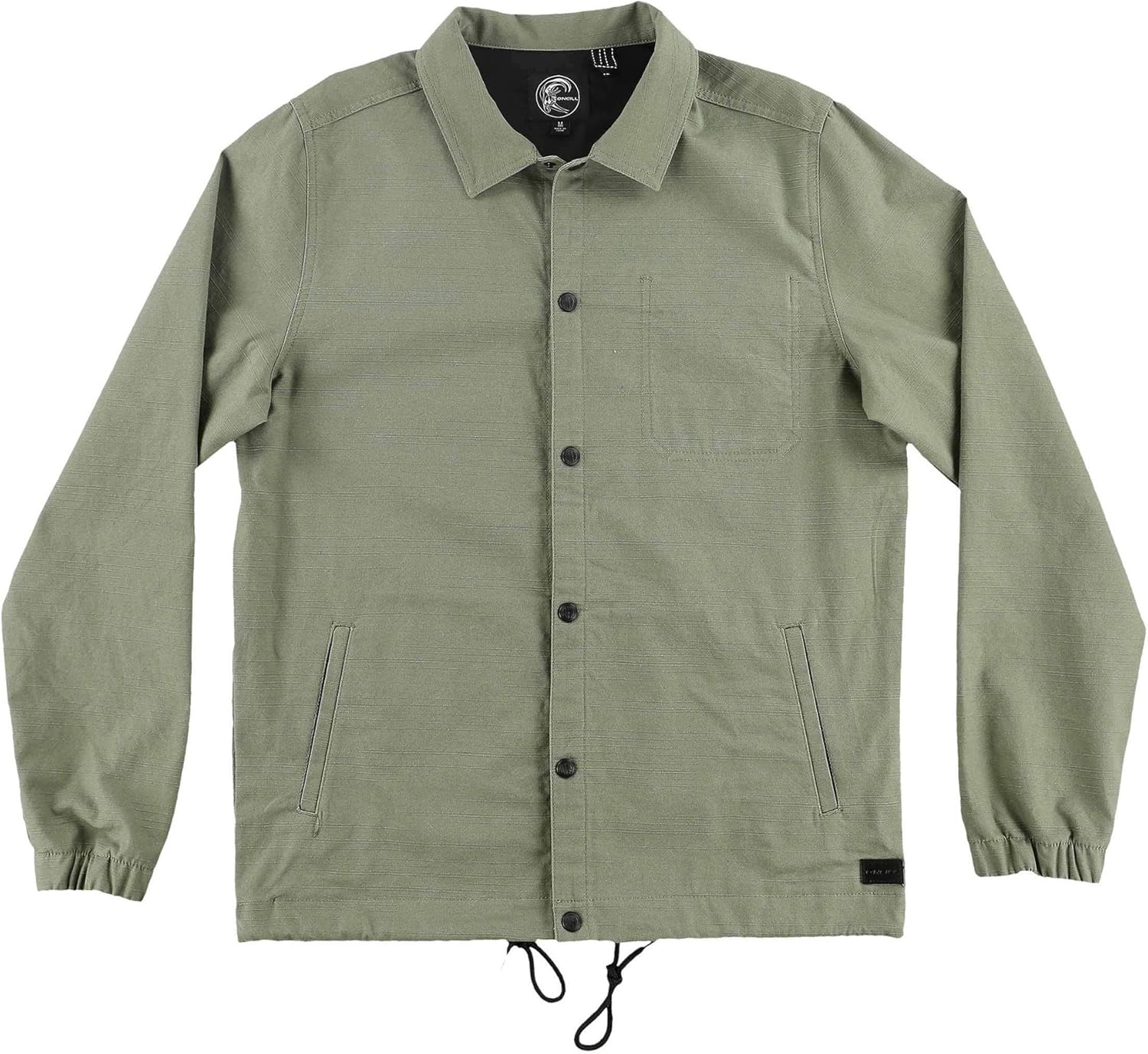 The O'Neill men's jackson coaches jacket features a classic fit, 100 percent cotton slub exterior, cotton poplin lining, coaches jacket styling, an interior pocket, and cuff snaps.