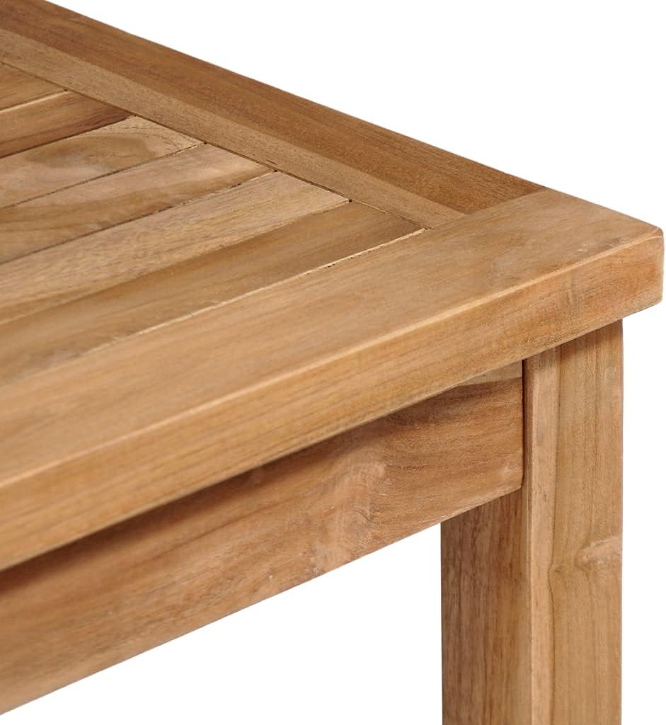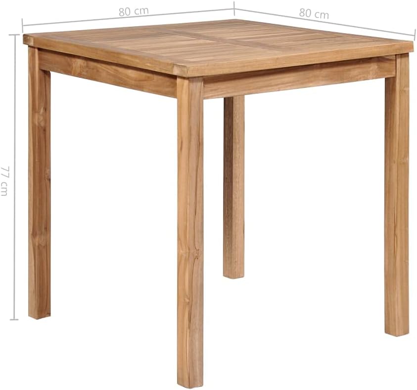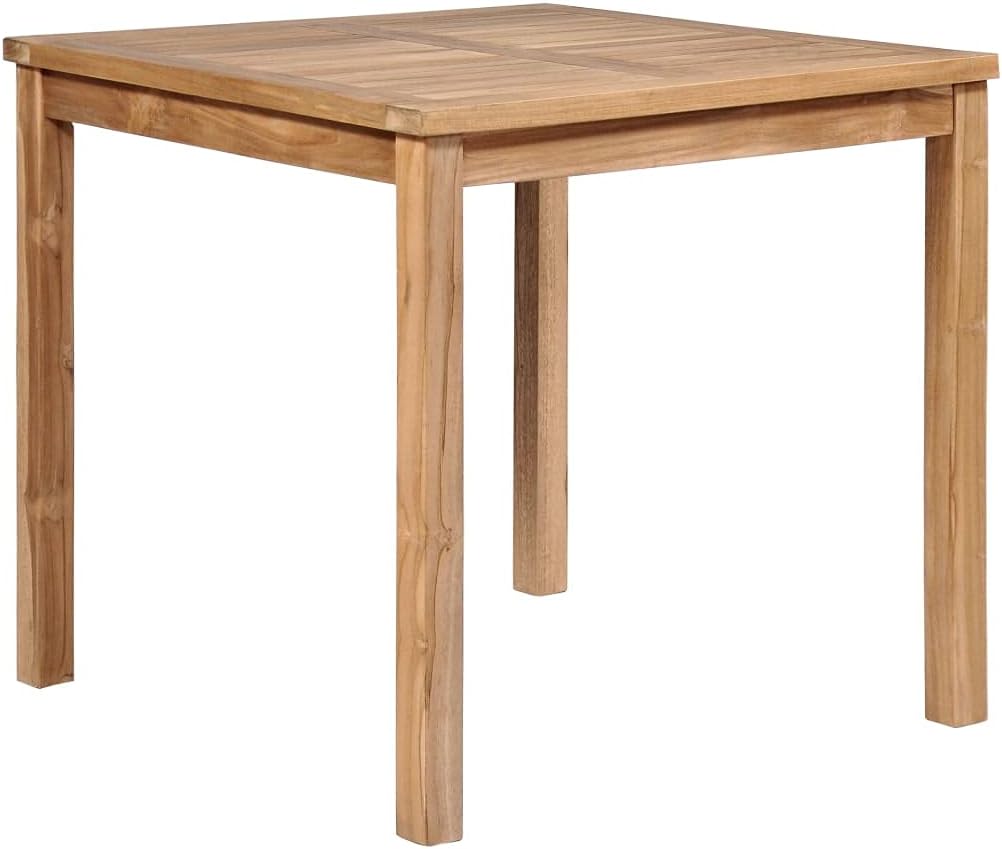 This solid wooden dining table with a water-based finish will add a touch of natural charm to your kitchen, garden or patio.Constructed from extremely durable teak hard wood, this piece of teak furniture has been seasoned, kiln dried and then fine sanded to give a very smooth appearance. Teak wood is known for its exceptional strength and weather resistance, making it far more suitable for garden furniture than any other kind of wood. Teak wood is the perfect choice if you want to purchase a long lasting piece of garden furniture.A beautiful water-based finish is applied to give the wood a warm color. With its water-resistant feature and classic look, you can place this piece anywhere around your sweet home 鈥?indoors or outside!Note: In order to extend the life of your outdoor furniture, we recommend you to protect it with a waterproof cover.Material: Fine sanded teak hard wood with waterbase finishDimensions: 47.2" x 27.6" x 30.3" (W x D x H)Tabletop thickness: 1"Table leg size: 1.6" x 1.6" (W x D)Suitable for indoor and outdoor useAssembly required: Yes