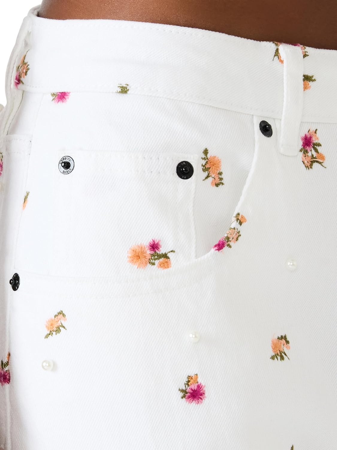 Relaxed fit jean with floral embroidery and pearl embellishment