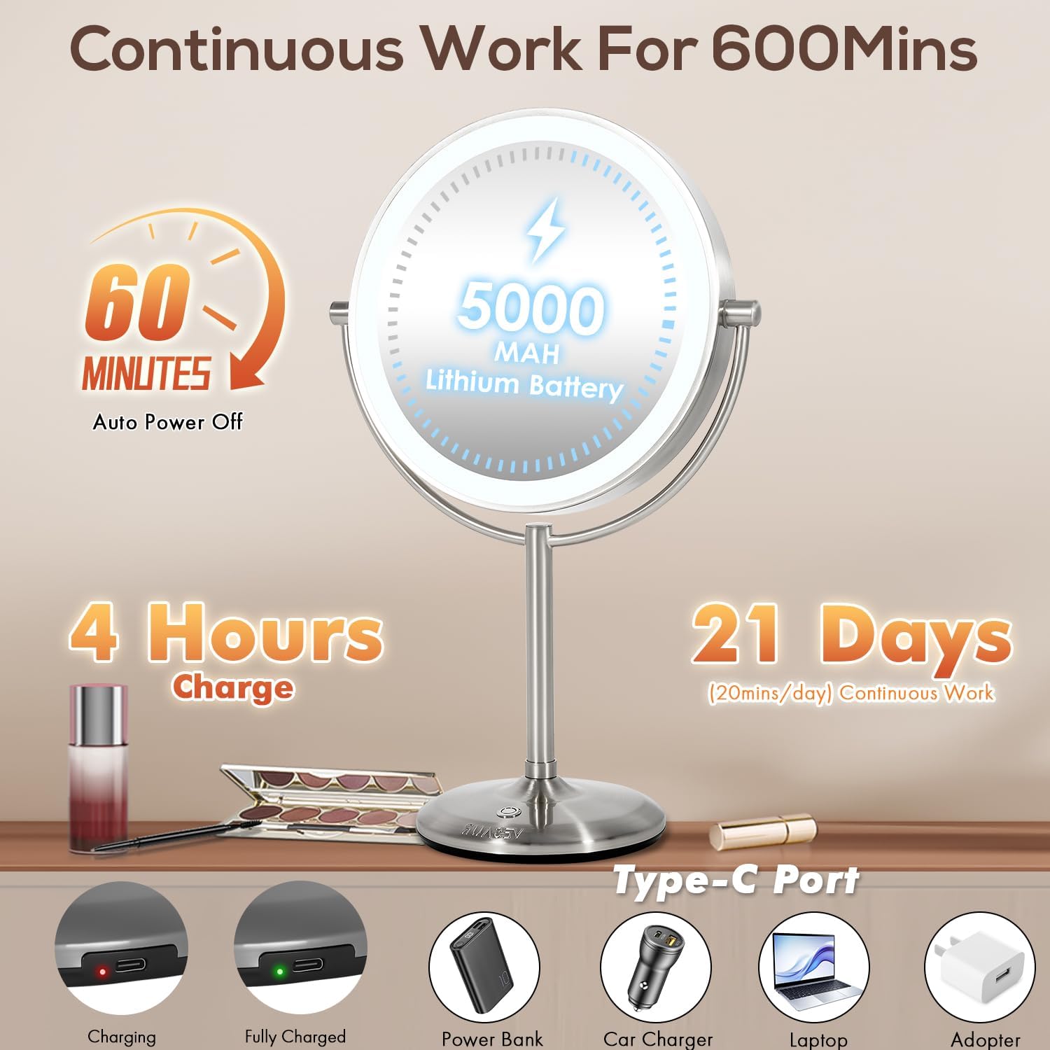 | Style Name | VESAUR 1X15X HD 9" Large 5000mAh Lighted Makeup Mirror |