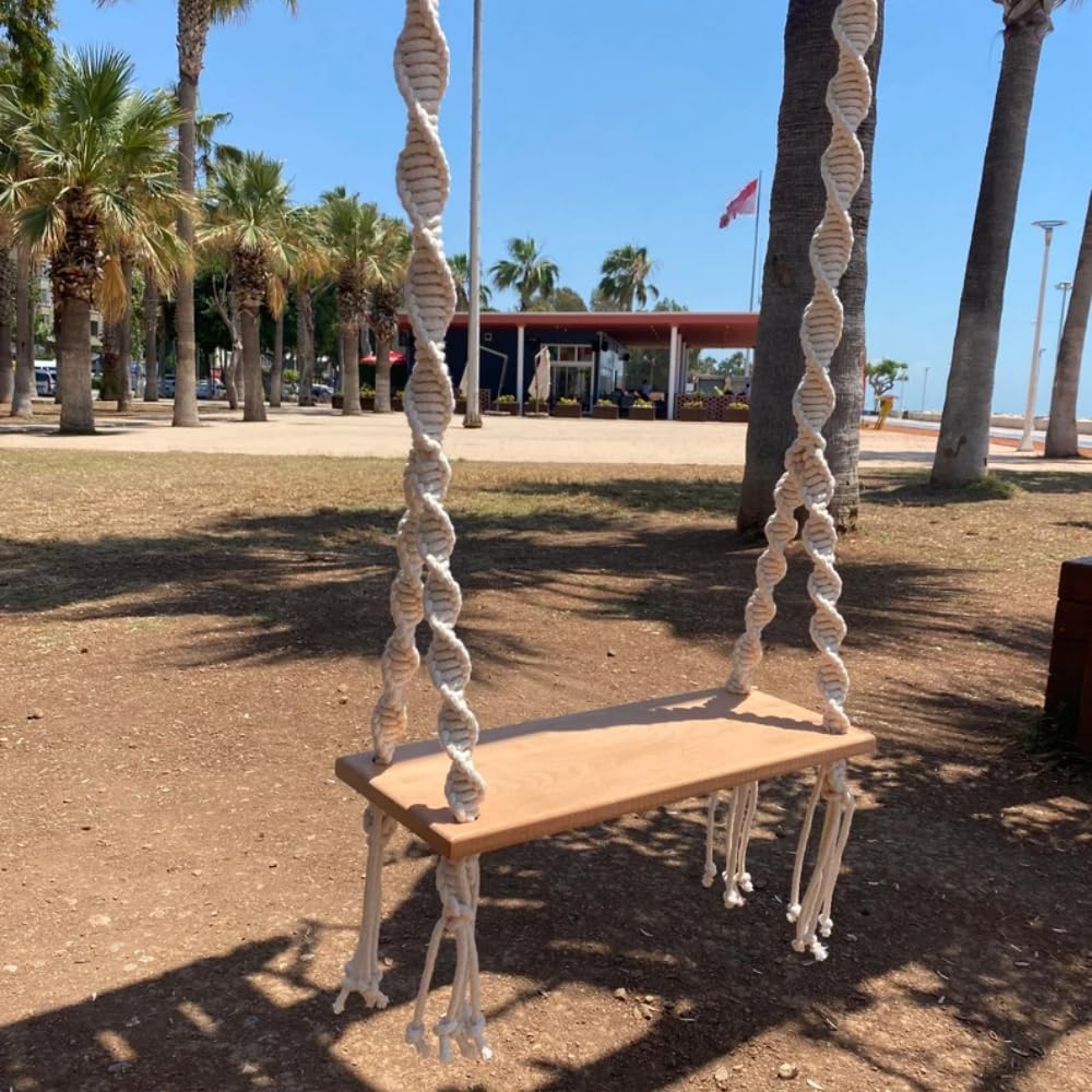 Add a touch of charm and relaxation to your space with this beautifully crafted Wood Rope Swing. Designed with a blend of rustic elegance and bohemian flair, this hanging chair combines a solid wood seat with handcrafted macrame ropes, making it both functional and decorative. Whether you’re creating a peaceful retreat in your backyard, adding a cozy nook on your balcony, or styling a unique spot at an event, this swing fits effortlessly into any environment. The wooden seat is sanded smooth and built to support adult use, offering a sturdy and reliable surface for relaxing. Its natural grain complements the detailed woven ropes, giving the swing a beach-inspired aesthetic perfect for indoor or outdoor décor. From shaded garden trees to pergola beams or home ceilings, the swing is easily mountable with the included durable ropes. This versatile swing also makes an elegant addition to wedding setups, boho-themed photo shoots, or leisure patios. Whether gently swaying in the breeze outdoors or nestled into a quiet reading corner indoors, it adds movement, beauty, and serenity to your space. Lightweight and portable, it can be relocated or stored with ease, making it ideal for those who love to update their space or take their comfort with them. Let this wood rope swing bring effortless style and calming energy to your everyday life.